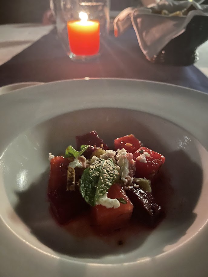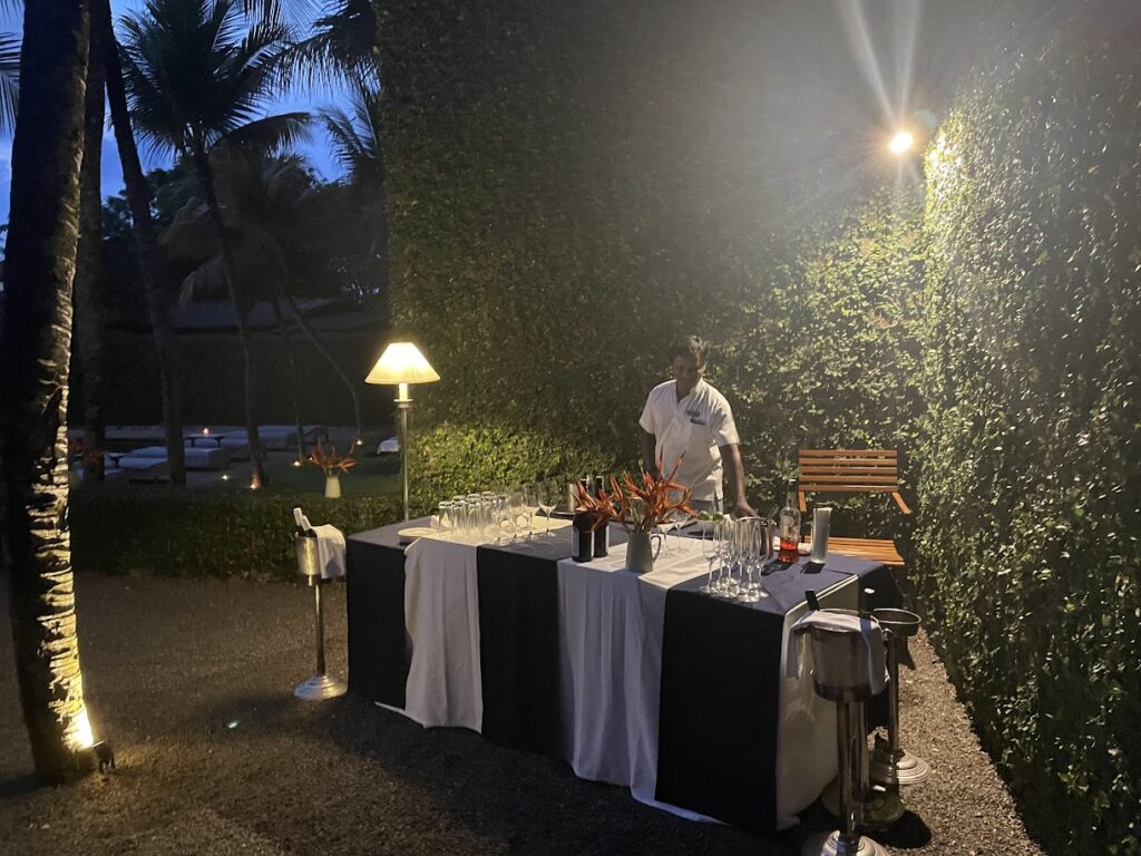 アマンガラのプールサイドディナー、静かで幻想的で落ち着きますよ。