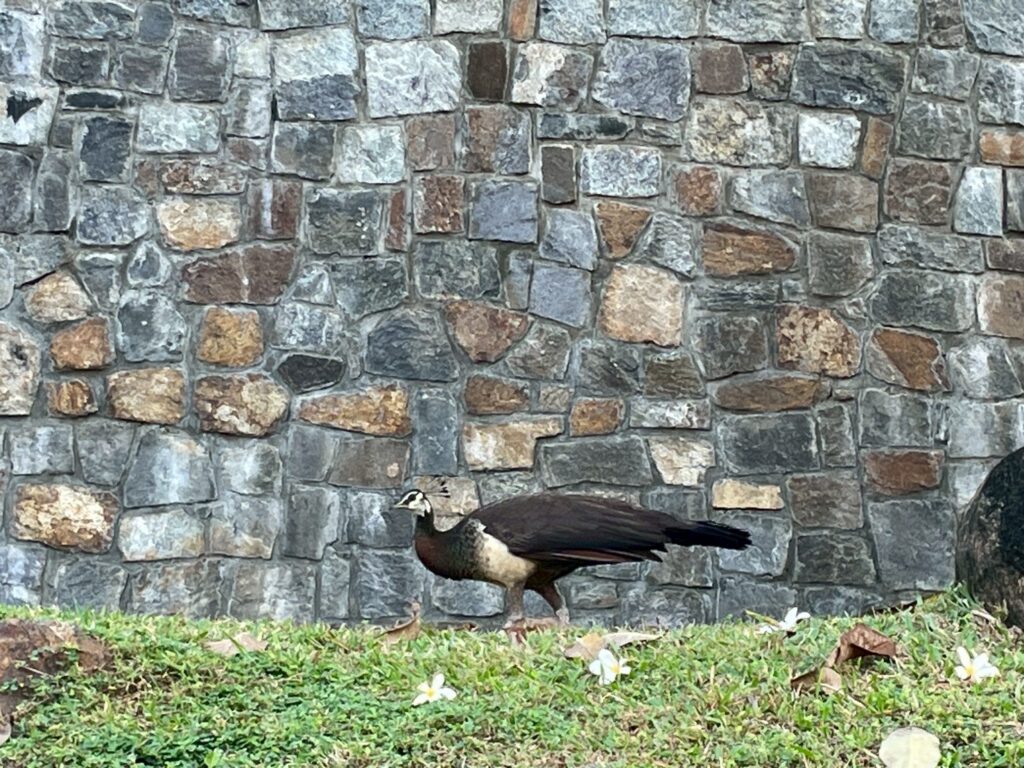 朝はビラの前庭にくじゃくが良く来ます。