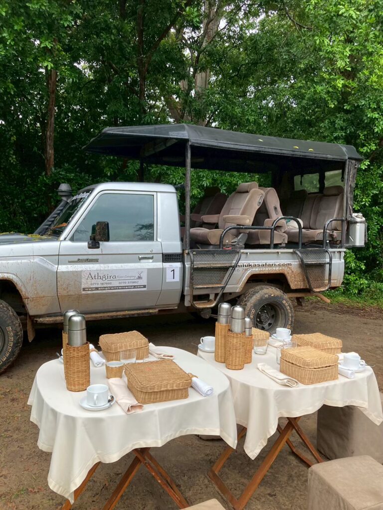 ちょっと開けた場所にこんなセットが!!別のジープで先回りの手配。すごいわ。。。