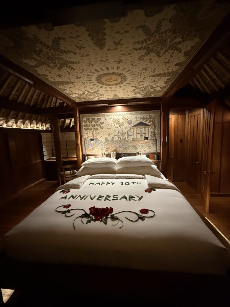 ベッドルームには結婚10周年へのサプライズメッセージまで…